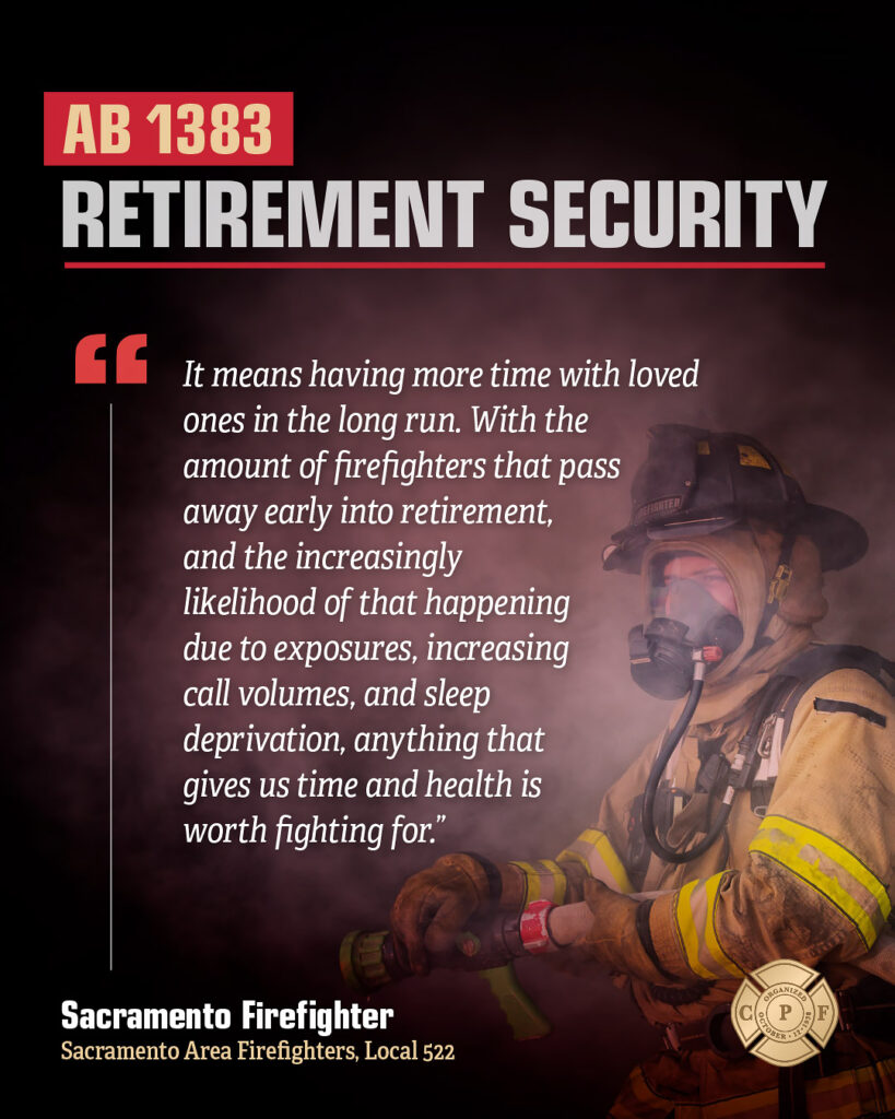 California Professional Firefighter sponsored bill to strengthen retirement safety.
